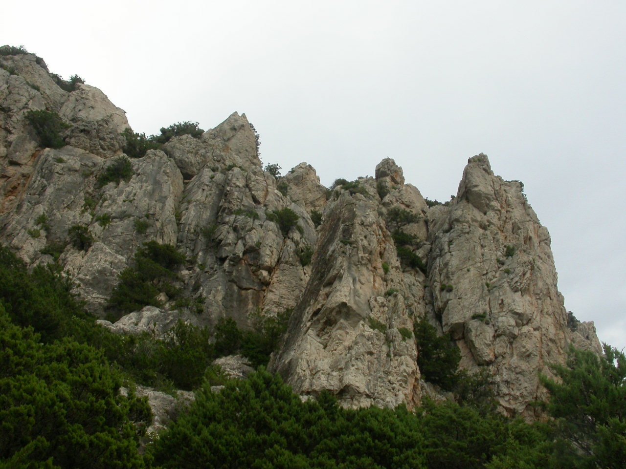L’isola nella sua imponenza: le falesie calcaree sono impressionanti e senza attrezzatura si può superare solo la prima falesia: