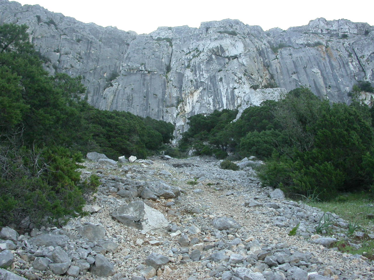 Sotto le pareti a picco si trovavano degli accumuli di detriti rocciosi in estrema pendenza. Percorrerli non era facile ma sotto le pietre ai bordi si trovavano diversi piccoli curculionidi, Percus sp., altri minuti carabidi e Asida sp.