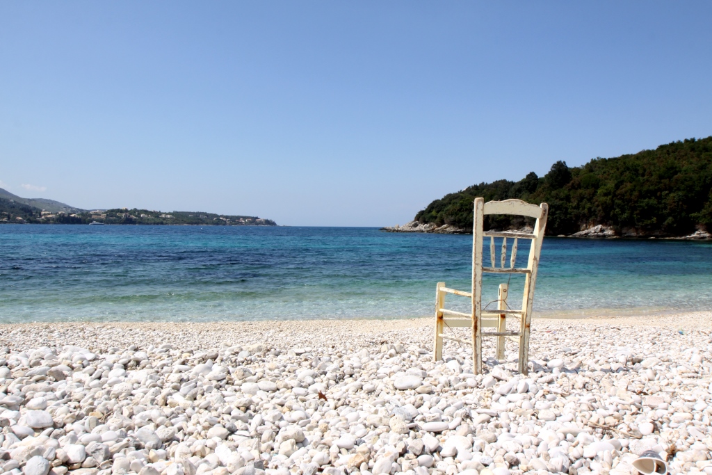 (questo rottame di sedia in una deserta spiaggia di ciottoli bianchi davanti al mare ha attratto la mia attenzione)