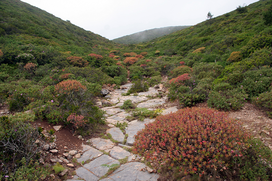 Marettimo è interamente ricoperta da una fitta macchia/gariga dominata da Erica multiflora, Lentisco, Rosmarino, Timo e altre essenze. Sul versante occidentale si incontrano poi dei lembi di pineta, uno dei pochissimi casi siciliani in cui la pineta è spontanea e non frutto di opinabili rimboschimenti. Fortunatamente gli incendi sono davvero rari e circoscritti. Nella foto portella Anzini