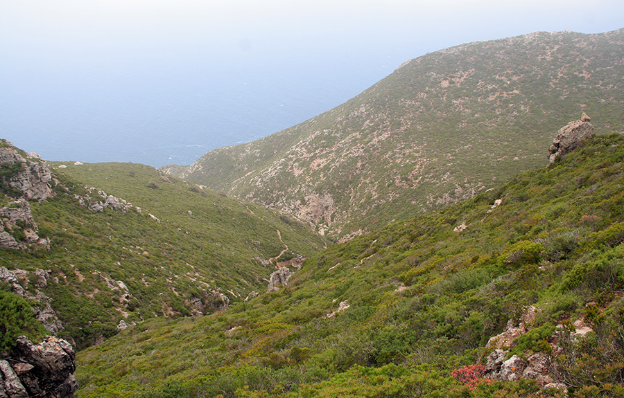 La cima più alta dell'isola è Monte Falcone (circa 700 m., ma vi assicuro che partendo dal mare è una bella salita)