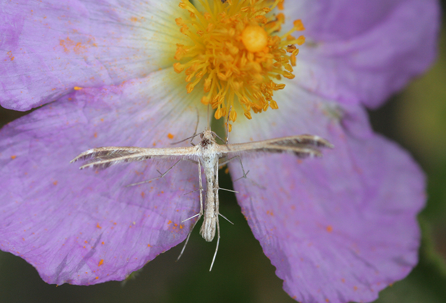 Aggrappato a un fiore di cisto questo elegante Pterophoridae che purtroppo non ho raccolto: