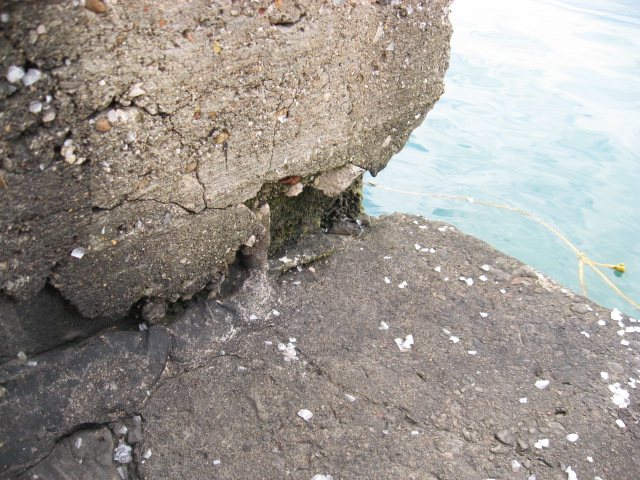 Qui a Pylos, seduto sul pontile, fra una foto e l' altra, vedo qualcosa in acqua aggrappato a una cima.