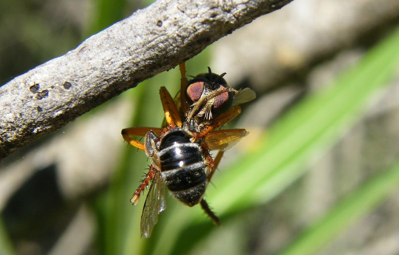 Eccomi, inserisco alcune foto fatte in natura a cui faranno seguito quelle di alcuni insetti preparati. Iniziamo con questo asilide "acrobatico"...