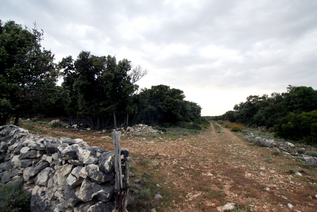 La zona che ho frequentato di più, e che vi illustrerò, è quella della parte sud di Cres. Si tratta di un territorio a forma rettangolare, col lato maggiore lungo una quindicina di chilometri, pianeggiante, pochissimo antropizzata. E' presente un solo minuscolo villaggio (Punta Kriza = Punta Croce), poche case isolate e qualche contrada abbandonata. Il territorio era interessato, in passato, dall'allevamento di pecore, oggi quasi del tutto cessato. Lo testimonia la presenza costante di muri di sassi e di strutture tipiche delle attività connesse con l'allevamento (ripari, recinti ecc.). Oggi quasi tutti i terreni di pascolo abbandonati sono coperti da vegetazione spontanea di tipo mediterraneo, con netta dominanza del leccio.
