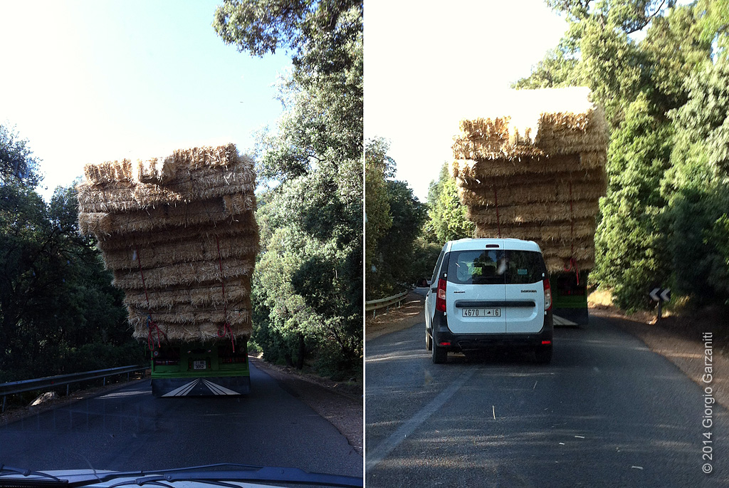 Il ritorno si conclude con un classico già visto ;-) ma mai fuori moda: un camion stracolmo di fieno con il carico che ondeggia ad ogni curva. Qui Carlo è impegnato nel sorpasso...