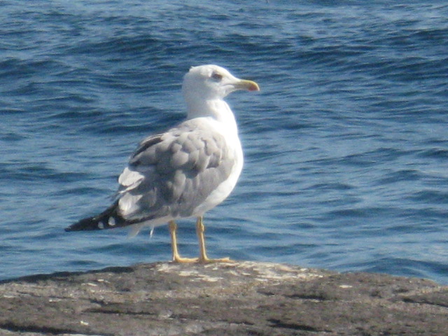 ... sul molo, come ad attendermi per darmi il benvenuto, indugiava pigramente un bellissimo gabbiano reale (Laurus michaelis) che mi concede anche qualche foto, con il maestoso profilo di Stromboli sullo sfondo...