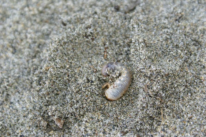 e diverse larve presumibilmente di Dorcus parallelipipedus (Linnaeus, 1758) che banchettavano tra sabbia e legno spiaggiato.