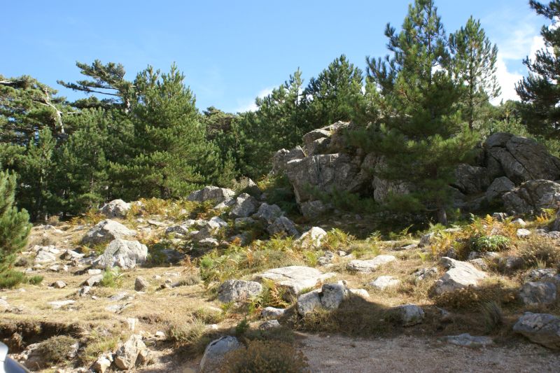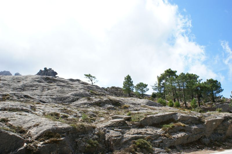 purtroppo sono arrivato tardi … Tornando verso casa ci siamo fermati a Col de Bavella, altitudine 1200 metri sul livello del mare, località con maestosi pini larici (Pinus nigra subsp. laricio, var corsicana) scolpiti dal vento come giganteschi bonsai.