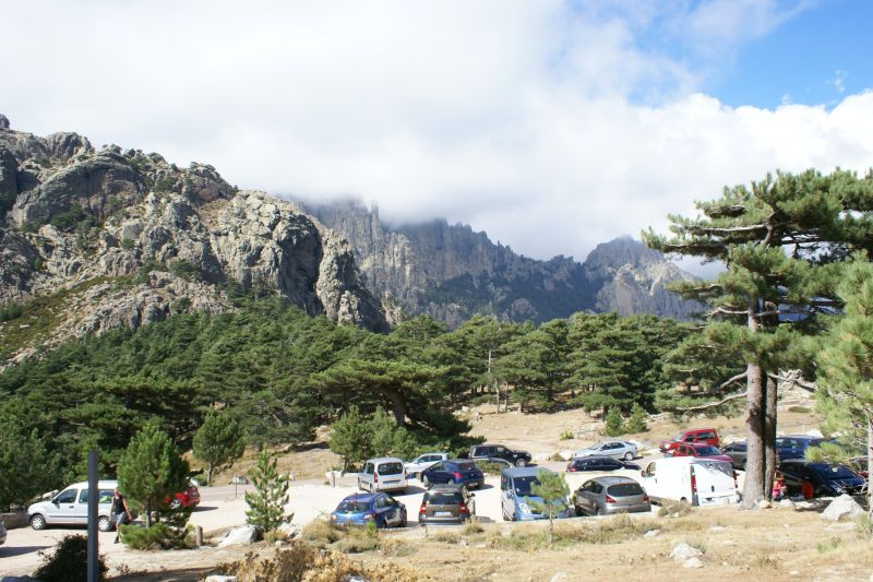 Tornando verso casa ci siamo fermati a Col de Bavella, altitudine 1200 metri sul livello del mare, località con maestosi pini larici (Pinus nigra subsp. laricio, var corsicana) scolpiti dal vento come giganteschi bonsai.