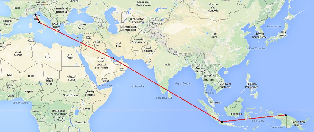 Sono partito da Bologna Sabato 19 Dicembre a sono arrivato in Papua Lunedì 21, dopo 36 ore di viaggio.