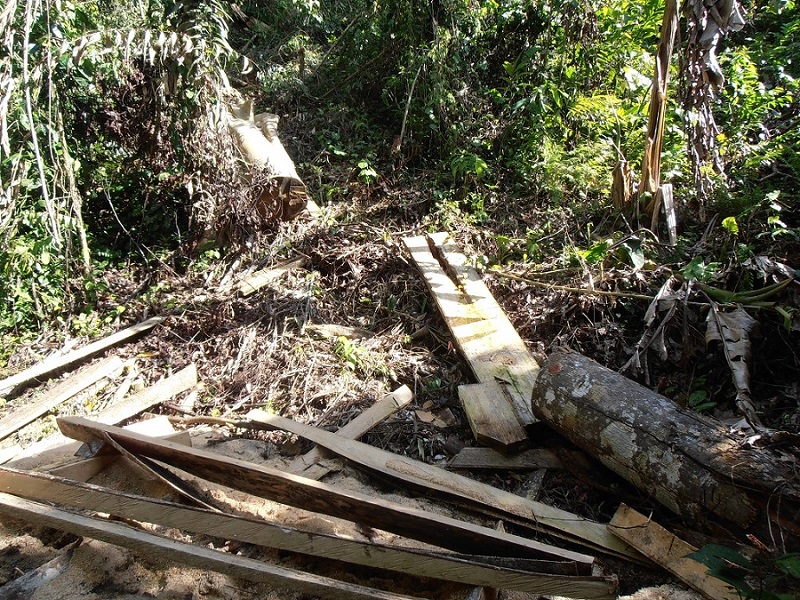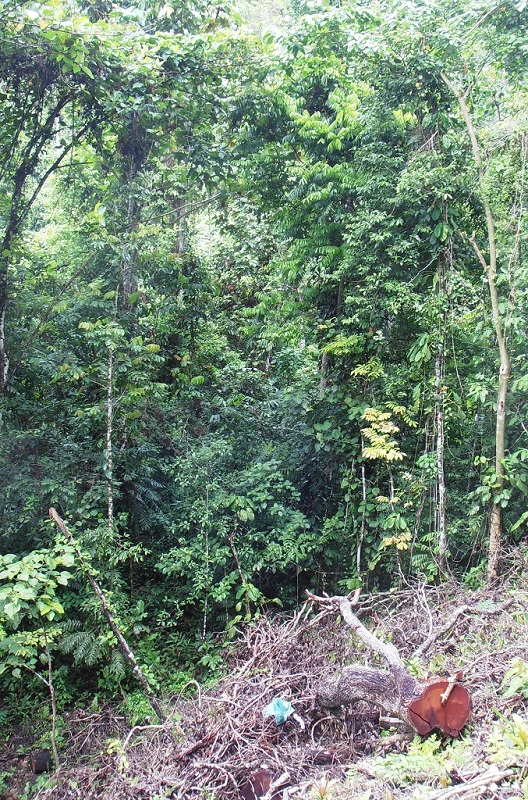 si aprono radure create dai locali che abbattono gli alberi per farne tavole da costruzione.....