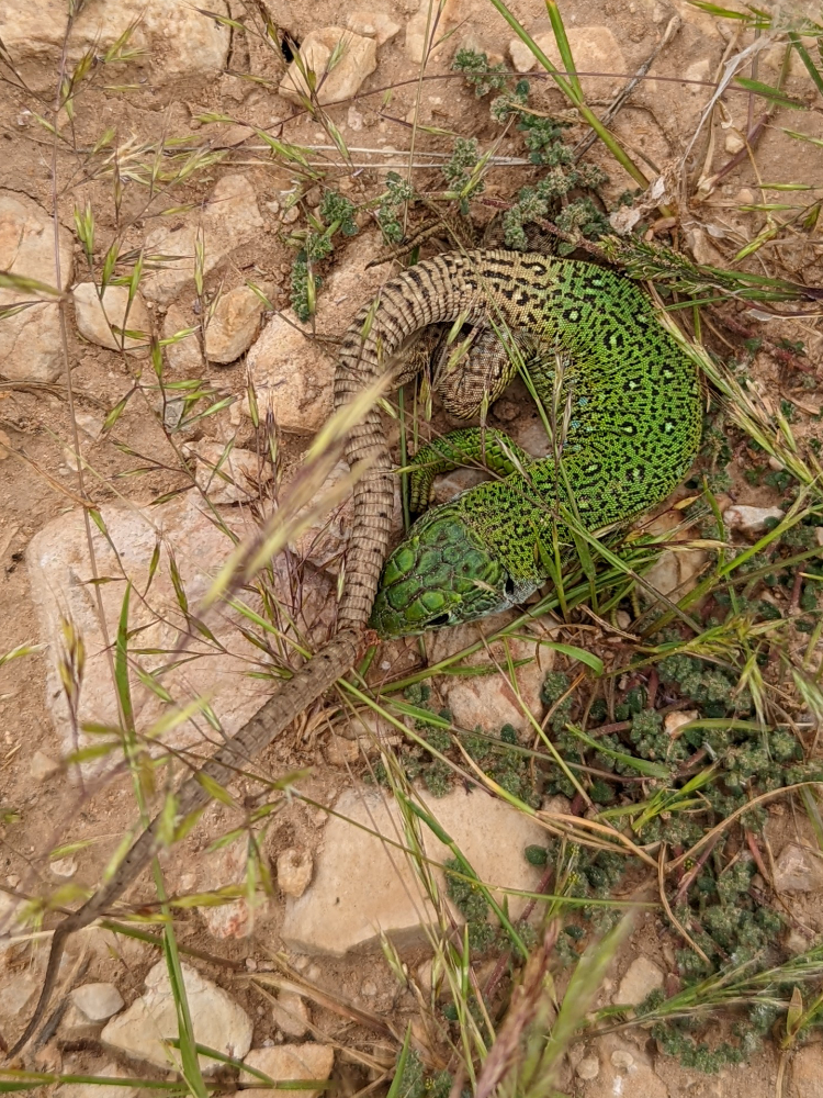 2 giugno Il giorno seguente decidiamo di visitare una zona che è abbastanza famosa: Ain Leuh. La giornata non è delle migliori: è coperto e non fa caldissimo ma, visto che non piove, decidiamo di andare lo stesso, nel pomeriggio. Arriviamo a una vallecola arida, con un fondovalle scosceso e una strada bianca dissestata che segue una sorta di piccolo canyon, profondo al massimo due o tre metri, scavato dall’acqua nella terra compatta. Non troviamo quasi nulla, ma l’habitat è decisamente magnifico. Ginepri secolari arroccati nelle zone più sassose, cespugli non meglio identificati e piccole piante di Euphorbia giallissime. Ci sono poi dei cuscinetti di una specie di pianta che vorrei far identificare, dove ogni tanto spuntava un fiore giallo su cui si posavano delle Mylabris e anche (in un fiore solo) delle Anthaxia. Sulle Euphorbia invece banchettavano a decine i bruchi della sfinge (Hyles euphorbiae) e qualche esemplare di Oberea erythrocephala. Una bellissima lucertola sguscia da sotto una pietra, disturbata dalla mia decisione di sollevare proprio la pietra dove aveva deciso di riposare. Dopo un paio d’ore, vista la scarsità di reperti, decidiamo di tornare indietro e ci fermiamo lungo la strada che attraversa le zone coltivate, dove ci sono alcune grosse ombrellifere, cardi e finocchi selvatici. Sulle prime troviamo diversi cleridi e qualche Anthypna, sui cardi invece le solite Agapanthia irrorata e A. annularis. Su questo fiore, che dovrebbe essere delle asteracee, erano numerosissimi i Glaphyrus, oltre che su alcuni cardi bassi. Raccogliamo anche alcuni Meloidi non ancora visti, che verranno presto determinati. Alla sera, riproviamo a fare la lampada, in una zona diversa. Scegliamo la radura dove abbiamo piazzato le trappole, dove c'è un bel bosco di querce e quindi, forse, anche qualche bel coleottero xilofago. Arriviamo abbastanza presto e riceviamo la visita del guardiaparco, incuriosito e preoccupato che potessimo far scoppiare un incendio con le nostre lampade. Rassicurato sul fatto che non c'erano rischi ci ha augurato buon lavoro e ha ripreso la macchina. Montato il tutto, comincio, come faccio sempre, a perlustrare i dintorni con la torcia frontale. Sopra i fili d'erba volano piccoli Sericini e, passando sotto un grosso leccio, sento il caratteristico "zz-zz" di un coleottero che si alza in volo. Puntando la torcia in direzione del suono riesco a prendere uno e poi due Rhizotrogini che svolazzano goffamente in mezzo all'erba per poi scoprire che la quercia è letteralmente invasa dagli scarabeidi e che, tra sericini e Rhizotrogus, è tutto un svolazzare. Con il retino raccolgo una bella serie di entrambi. Prendo una piccola stradina che si inoltra nella prateria, dove alcuni grilli cantano con un fortissimo "crrr-crr" che spacca letteralmente i timpani. Lungo il sentiero camminavano alcune bestiole come Carabidi e Tenebrionidae, oltre a un succiacapre che mi ha fatto prendere un colpo, involandosi a solo un metro da me. Durante la serata arrivano anche alcuni Oryctes, Phyllognathus e una Polyphilla. Nessun Cerambycidae o Oedemeridae però. Peccato, ma comunque una bella lampada!
