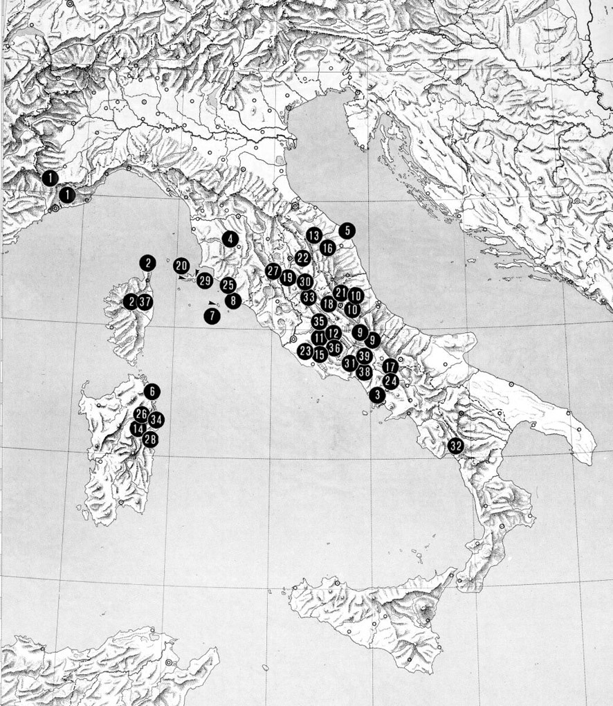 hypotyphlus ha scritto: Julodis ha scritto: A proposito, se non sbaglio, un Otiorhynchus ceco sta pure nella faggeta sullo Scalambra. Non so se uno dei due che stanno pure sui lepini. Sicuramemnte no  .Da quelle parti io conosco Otiorhynchus (Lixorrhynchus) sbordonii di Subiaco e Otiorhynchus (Lixorrhynchus) latellai di Guarcino;vedo che il monte Scalambra se ne sta proprio nel mezzo e quindi non escludo che di quel monte possa essere stata descritta un'altra specie.Comunque il Lazio, ma più in generale l'Italia centrale, per queste bestioline è un vero eden, come si evince anche dalla cartina che allego. fig.jpg Quelli campani (immagino il 3 e il 24) di che località sono?