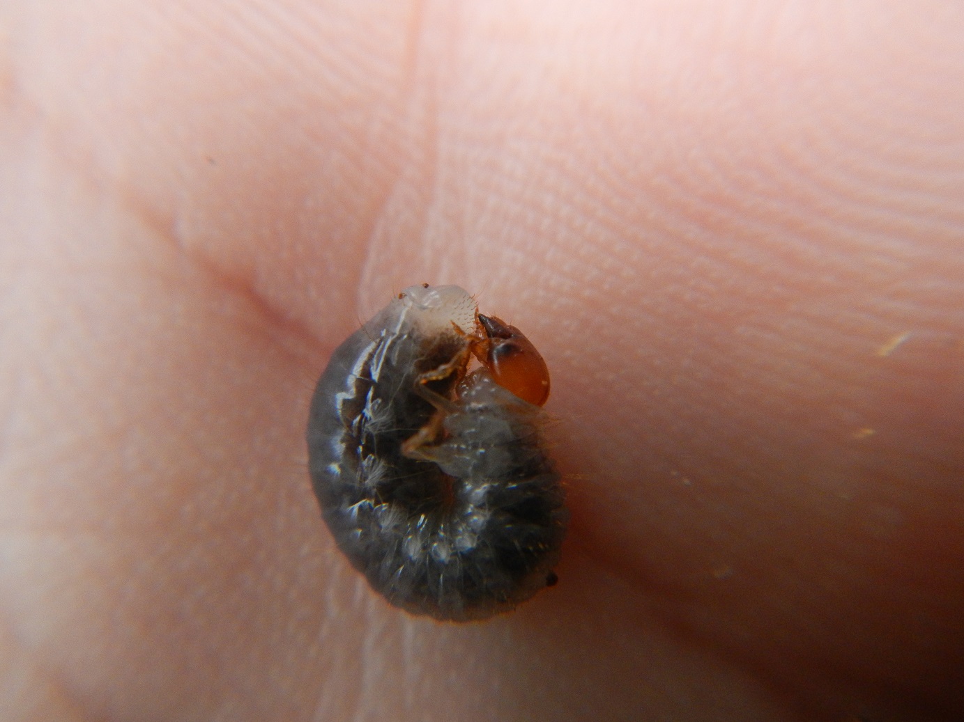 Trovo anche questa larva di lepidottero, mezza distrutta con la paletta. Per un attimo ho temuto di aver mietuto una larva di Dorcadion!