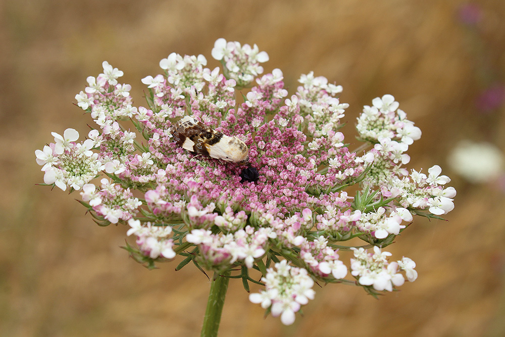 Stamani mi sono alzato con l'intento di prendere retino e barattoli e partire per esplorare una nuova località scoperta qualche tempo fa su Google Maps e apparentemente promettente, la necropoli di Luni sul Mignone. Carico lo zaino in macchina e parto, scoprendo solo dopo mezz'ora di viaggio che per raggiungere il posto avrei dovuto affrontare una decina di chilometri di strada completamente dissestata, in mezzo al nulla, senza la minima linea telefonica e circondato da gregge con cani da pastore dall'aria poco raccomandabile. Per evitare di far finire la giornata in tragedia alle 10 del mattino, decido sconsolato di fare inversione e tornare verso Viterbo, quando mi viene un'idea: perché non deviare di poco e andare in una località ormai più che collaudata ed evitare che il viaggio sia stato a vuoto, magari approfittandone per fare qualche foto da mostrare sul FEI? Decido quindi di andare in una delle mie località di ricerca preferite, la necropoli etrusca di Norchia, poco lontano dai comuni di Vetralla e Monteromano. Norchia è una località particolarmente nota per il suo grande valore archeologico e storico, essendovi tracce di attività umana che partendo dal Paleolitico arrivano al 1435. Nei musei archeologici locali sono infatti conservati numerosi reperti trovati in zona, soprattutto risalenti al periodo etrusco, che è quello che ha lasciato le tracce più evidenti con le sue necropoli rupestri. Le ricerche archeologiche stanno tutt'ora andando avanti con numerose interessanti scoperte, condotte anche da team iternazionali che ho avuto il piacere di incontrare in zona una volta. Altro aspetto meno noto ma altrettanto interessante è l'immensa ricchezza naturalistica ed entomologica della zona. Le mie ricerche entomologiche in zona, iniziate nella primavera del 2020, hanno infatti già prodotto numerosi ritrovamenti di rilievo nei gruppi tassonomici di cui mi occupo, come la riscoperta di Symmorphus declivis in Italia, la scoperta di una nuova Andrena endemica italiana e numerosi nuovi ritrovamenti di api poco note. Per dare un dato quantitativo della ricchezza faunistica di Norchia, basti pensare che in appena un paio di chilometri di sentiero ho raccolto nel corso degli anni ben 282 specie di api su un migliaio totale noto in Italia, un numero che aumenta continuamente ad ogni uscita, infatti ben sei specie le ho trovate per la prima volta proprio oggi! Specie interessanti sono uscite però anche in numerose altre famiglie e ordini di insetti: Chrysididae, Gasteruptiidae, Buprestidae, Cerambycidae, Elateridae, Mantispidae, alcuni Ditteri... Il motivo di questa grande ricchezza è attribuibile alla grande varietà di ambienti e micro-ambienti che si trovano in pochi chilometri quadrati. La zona di Norchia infatti è solcata da tre fossi che hanno scavato delle gole profonde circa 30 m con interposte delle zone rialzate che, pur essendo alla stessa quota, presentano condizioni nettamente diverse. Con le poche foto scattate oggi cercherò di mostrarvi una parte di questa varietà, quella presente nella parte più settentrionale. Mi perdonerete per le foto degli insetti al limite del decente, ma è praticamente la prima volta che faccio foto in natura e il vento non aiutava Una volta parcheggiata la macchina, il sentiero si apre su un grande campo incolto e soggetto a falciatura proprio a inizio estate. Questa attività rende il campo particolarmente interessante: completamente ricoperto di fiori di ogni genere in primavera (soprattutto a Maggio è un tripudio di vita!), la falciatura fa seccare fortemente il terreno permettendo la crescita di piante resistenti alla siccità, come cardi e Centaurea varie su cui si concentra un'infinità di floricoli estivi. Nonostante al momento sia tutto tagliato a livello del terreno è comunque possibile raccogliere abbondantemente lungo i bordi del campo, in cui vengono lasciati 2-3 m di fitta vegetazione erbacea ancora in fiore: malva, Echium, Centaurea, Dipsacaceae e molto altro, garantendo altrettanta varietà di impollinatori. Questo minuscolo dittero è il primo insetto trovato oggi, su un cardo pronto a fiorire Numerosi anche i Myrmeleontidae, con varie specie che si mimetizzavano sulle Graminacee come quello in foto. Per la prima volta ho anche visto il Palpares libelluloides, animale veramente incredibile! Ovviamente in un ambiente così non mancano le infiorescenze di Daucus, solitamente piene di Mordellidi e banalità varie, ma a volte con qualcosa di diverso, come questo curioso Lepidottero Percorso tutto il campo si arriva al limitare della gola scavata dal fosso delle Pile. Al di là della gola si nota la zona rialzata su cui sorge quel che resta della parte medievale di Norchia, con visibile quel che resta del castello. La grande zona spoglia sullo sfondo è separata dalla cresta su cui sorge il castello da un altro fosso, il fosso del Biedano, che scorre parallelo al fosso delle Pile. Questa foto mostra perfettamente come le tre zone rialzate si trovino sullo stesso livello, ma presentando ambienti nettamente diversi: la zona del castello presenta una fitta vegetazione arborea con pochi piccoli spiazzi, spesso ricchi in ferula, pianta altrimenti assente per maggior parte della zona (solo quest'anno per la prima volta ne ho trovate due piante in un campo sul fondo della gola), mentre la zona sullo sfondo, non accessibile in quanto area militare, in primavera si ricopre di asfodeli, altra pianta assente nel resto della zona. Inizia la discesa! Come prima tappa mi fermo a questo tronchetto completamente secco e traforato dagli xilofagi che mi frutta sempre qualcosa di interessante, come Crisidi vari o lo Stefanide Megischus anomalipes, i cui maschi amano sostare sul lato inferiore del ramo sulla destra. Purtroppo oggi la tappa è stata deludente, colpa del cielo velato e del vento. La discesa lungo la parete continua attraverso gli stretti solchi scavati nella pietra tufacea, a volte con tratti non particolarmente agevoli. Su q