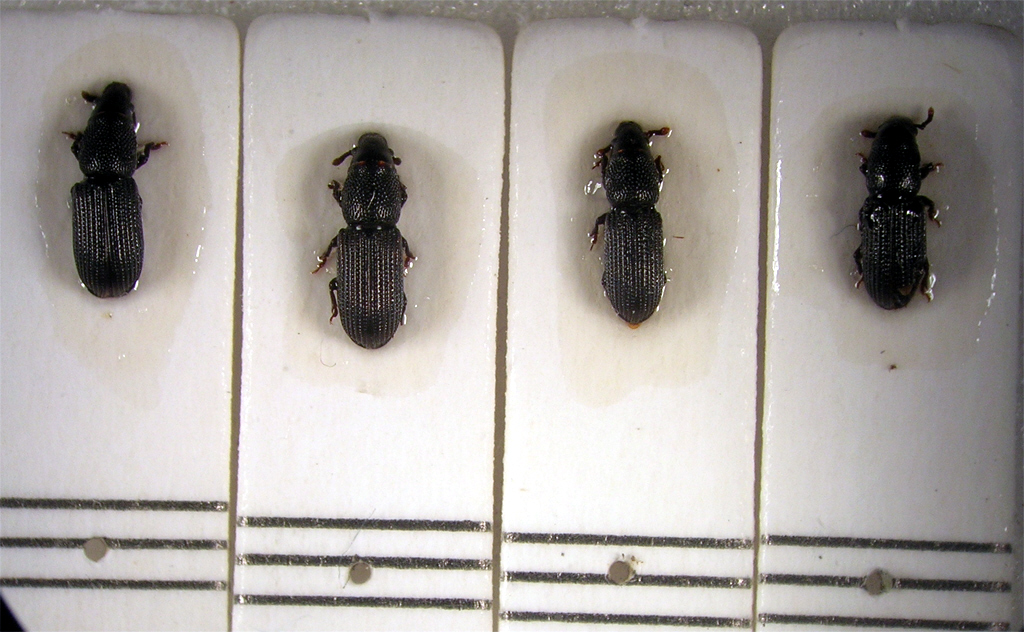 Trovati sotto la corteccia di tronchi di pino, abbattuti da tempo e accatastati sul bordo di uno stradello.