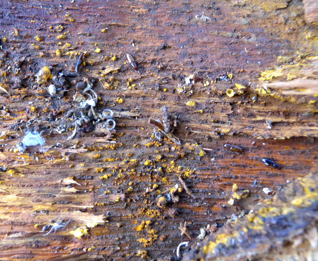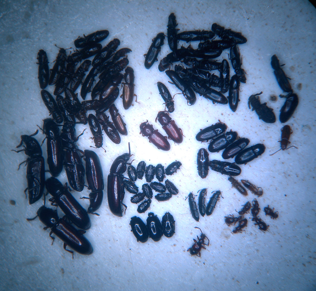Ci sono: Cerylon, Rhizophagus, un Placonotus testaceus, forse due Zoopheridi, Histeridi, Tenebrionidi, Scidmenidi uno Pselaphide ecc.