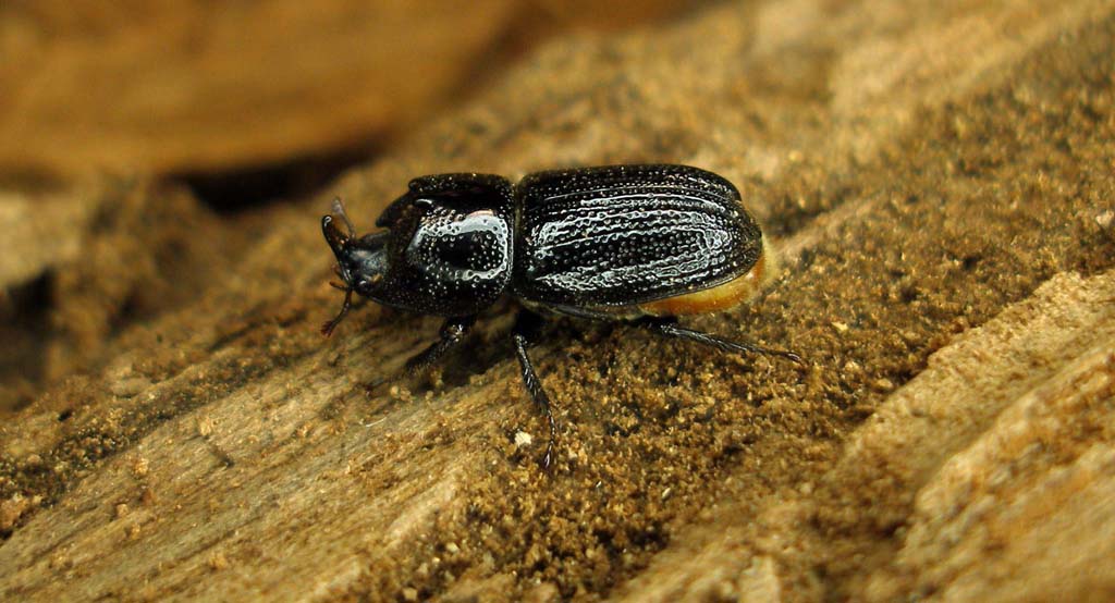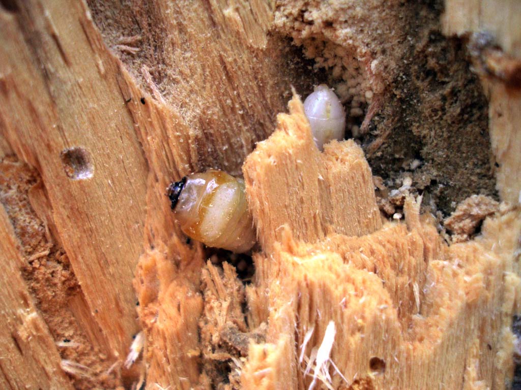 Il legno per i Propomacrus me lo sono procurato da un noce morto (ìgiovane) in piedi. Il fatto è che, dopo appena un paio di colpi di accetta, il tronchetto (diametro circa 15-20 cm), è rovinato a terra rischiando di travolgerci. Il fatto è che era evidentemente più deteriorato internamente di quanto non sembrasse; era, infatti, solcato da innumerevoli gallerie con numerose larve ed adulti immaturi dei due piccoli Lucanidi, Sinodendron cylindricum (Linnaeus, 1758) e Platycerus sp. (P. caprea (DeGeer, 1774) ( ?). Per quanto ne so, il noce (Juglans regia) non figurava fra le essenze nutrici delle larve di queste specie (almeno fino alla revisione di Franciscolo). Sinodendron cylindricum (Linnaeus, 1758) - maschio e femmina