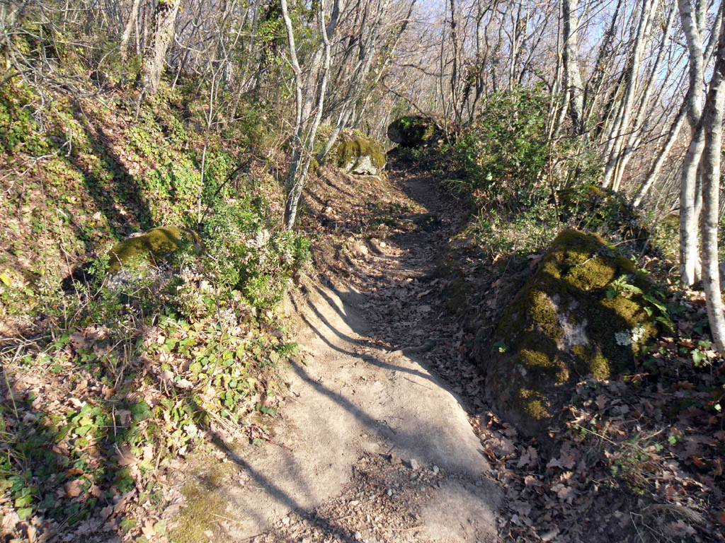 Oggi non sapevo cosa fare e vista la bellissima giornata ho pensato di andare a fare una passeggiata sul monte Palanzana, precisamente nella Valle dell'Arcionello. Era la prima volta che ci andavo e sono rimasto affascinato da questo posto Parcheggio il motorino vicino al convento dei cappuccini e il posto sembra già interessante. Comincio a salire un po' per il sentiero... Per curiosità mi affaccio al di la di una motagnetta di terra e noto questa grossa pozza, sul bordo ho trovato un bellissimo maschio di Meloe blu metallizzato, purtroppo non ho fatto foto perchè ero attaccato a un ramo per non cadere nella pozza e c'era un vento fortissimo! Appena lo preparo posto qualche foto. Dopo alcuni metri sento dolore ai piedi e noto che è pieno di sassi, mi metto subito a girarli tutti. Risultato: maldischiena e mani piene di formiche  Continuo il sentiero fino a uno spiazzo fatto interamente in roccia. Sulla destra ci sono alcuni grossi massi, di cui uno scavato a formare una sorta di vasca o mega-poltrona  Opera dell'uomo o dell'erosione?  Si vede anche la cima del monte. Continuando per il sentiero diventano sempre più comuni grossi massi come questo Andando a controllare se c'è qualche insetto noto che c'è una particolare incisione geometrica sicuramente opera dell'uomo Finalmente il sentiero diventa più regolare, grazie a questi lastroni di pietra Ecco l'ultima foto degli ambienti, un agglomerato di massi Ora passo agli esseri viventi, iniziamo con le piante! Potete identificarmele? Si trovava solo nei pressi dei massi formando tappeti lunghi anche un paio di metri. Sui massi ricoperti di muschio convivevano queste due specie di felci Abbastanza comune era anche il ciclamino, purtroppo non in fiore Su alcuni massi ho notato la presenza di questa piantina(o forse è un fungo?) che non avevo mai visto... Comunissimo il pungitopo C'erano anche alcuni alberelli completamente spogli, ma con numerosi fiori gialli Vicino a un tronchetto c'erano alcuni di questi fiorellini viola Passiamo ai 2  insetti Un bruco che camminava sul sentiero e una larva di Staphylinidae che ho raccolto e sto allevando In uno spiazzo di roccia era pieno di farfalle uguali alla Inachis io ma senza le chiazze viola, era uno spettacolo incredibile  , purtroppo nelle foto non si capiva niente DOmani ci torno e spero di trovare qualcosa di più Lista delle specie raccolte e avvistateColeopteraHarpalus tardusMeloe violaceusNalassus dryadophilus HemipteraTettigometra laeta