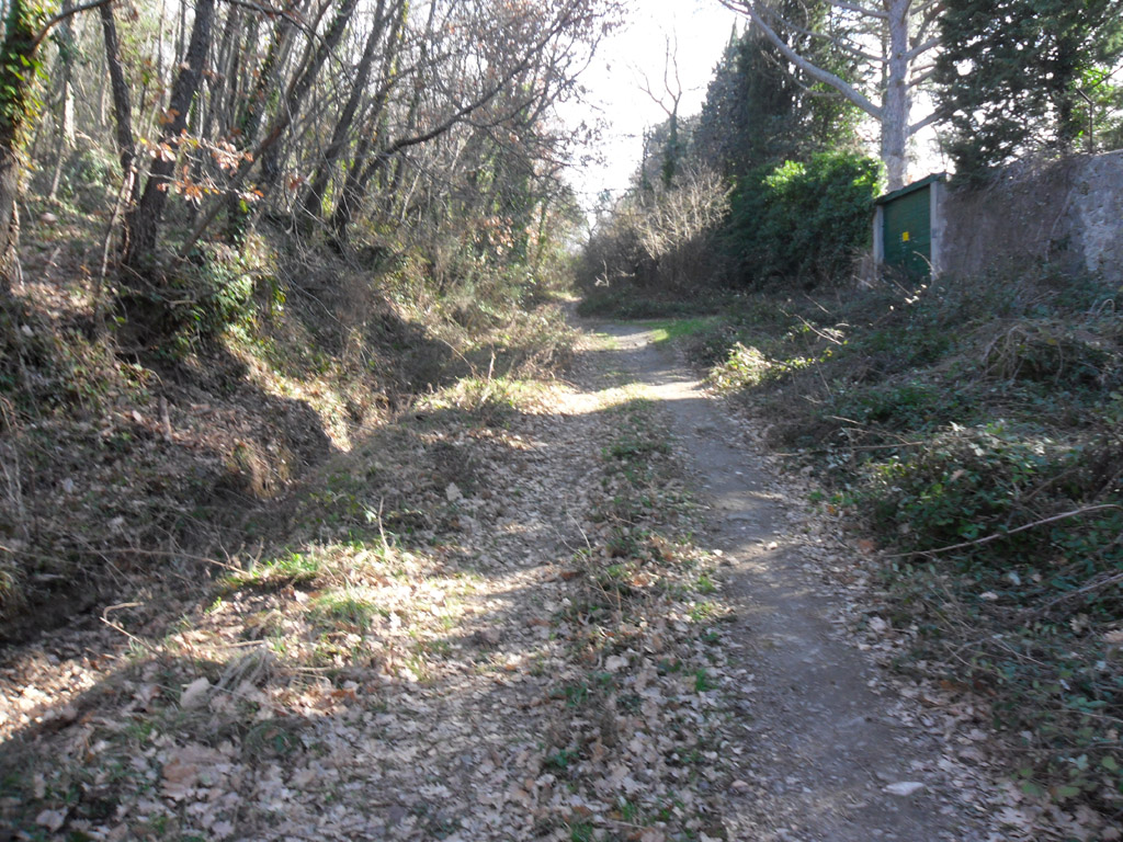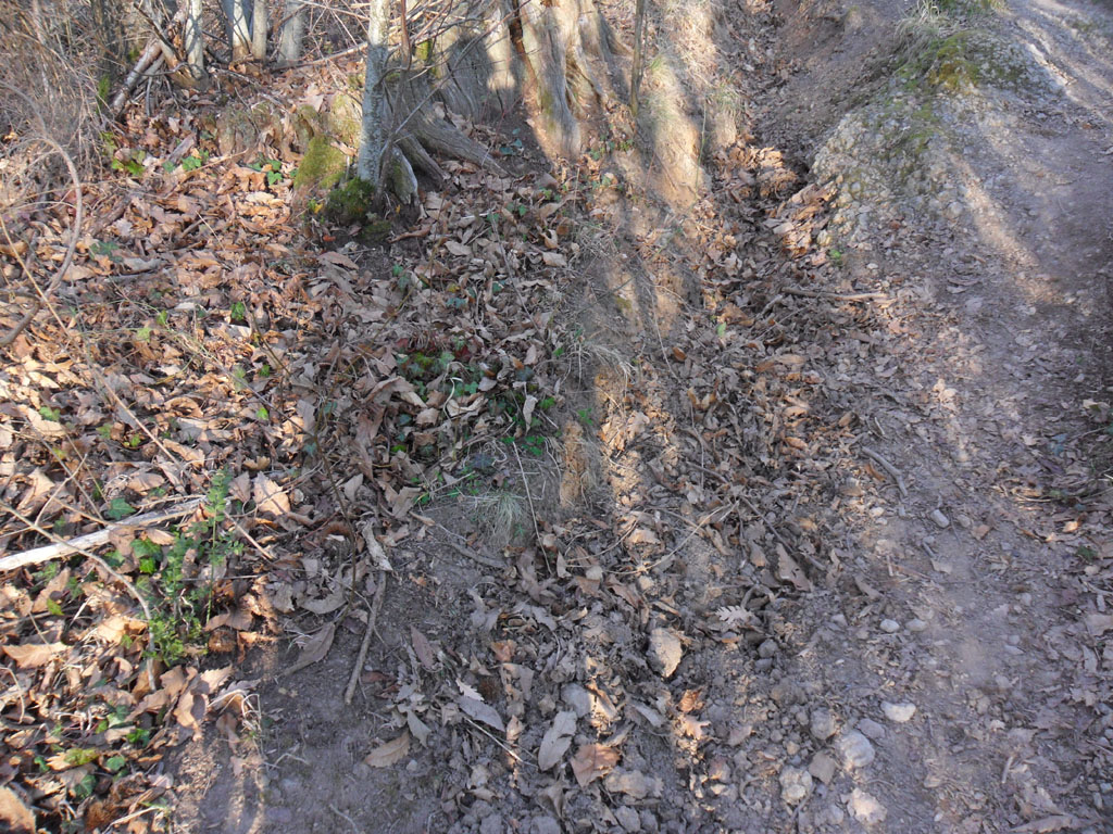 A volte sui lati del sentiero ci sono dei canaletti in cui si accumulano foglie e sassi.