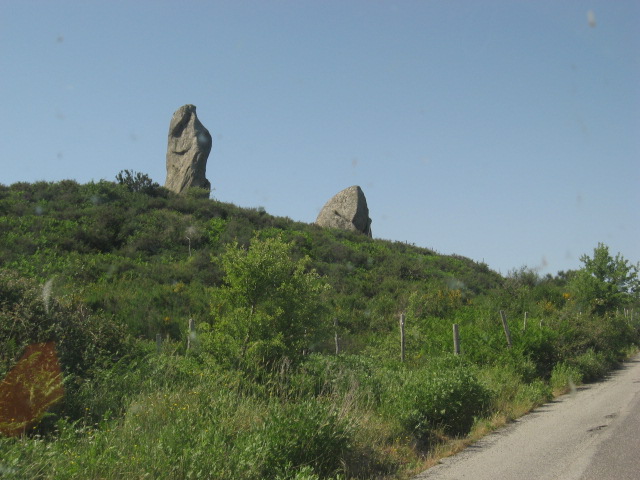 Due strani pilastri di roccia ai margini del bosco.