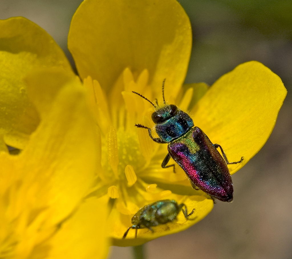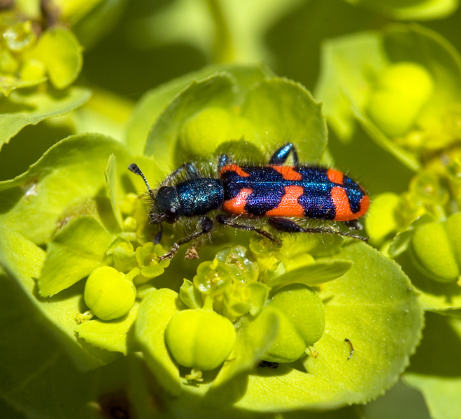 Oggi giornata calda e soleggiata (in attesa di un weekend nuvoloso....) trascorsa immersi nella natura del Parco Regionale Gallipoli-Cognato. Entomofauna ancora scarsa: a parte qualche specie precoce di coleotteri, avvistate solo un paio di Zerynthia polyxena, Anthocaris cardamines, Leptidea sinapis, Pieris napi e Pararge aegeria. A giudicare dallo stato della vegetazione (ad esempio le Aristolochia sono ancora senza fiori, è fiorita solo Ophrys lutea, l'olmo mostra solo le prime foglie), la stagione è ancora ritardata di almeno 15 giorni. Mentre io mi affannavo a raccogliere quel poco che c'era, l'amico Fabio faceva qualche foto. Anthaxia midas in compagnia di Anthaxia salicis. Acmaeodera tassii Trichodes alvearius |