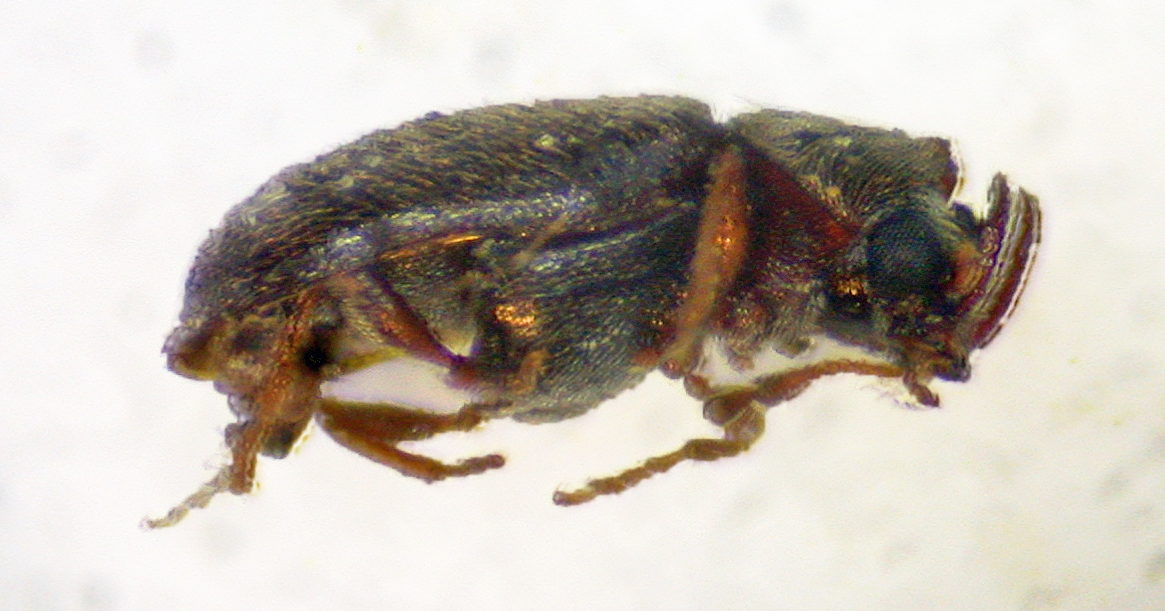 Tra il materiale raccolto con la trappola aspiratrice che cattura aeroplancton, utilizzata nella primavera-estate 2011, ho trovato (tra migliaia di insetti smistati) tre esemplari di questo coleotterino cornuto (lungh circa 1,5 mm). Hai idea di cosa si possa trattare?