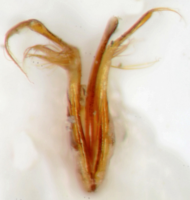 Jean-ed de la Quenouille ha scritto: Ciao, Questo è in definitiva un Ptinus calcaratus. Benjamin Benissimo. Grazie per la determinazione. Jean-ed de la Quenouille ha scritto: Abbastanza per dire che non è Ptinus subpilosus. E 'possibile avere un'immagine sullo stesso piano di quello ho postato, vedere i tre lobi? Vorrei guardare a tutto questo più da vicino domani. Cercherò di fare una fotografia come richiesto. In realtà questo ed altri esemplari li avevo indicati come prob. P. subpilosus o P. calcaratus (il vero lapsus). Ho un'altro esemplare, già estratto, dove è più chiara la forma dei tre lobi. I due laterali formano, insieme, una specie di "lira" con soli pochi peluzzi all'apice. Proprio come in un disegno dei genitali del P. calcaratus. Anche la spina delle tibie posteriori, lunga ed arrotondata all'apice, è da P. calcaratus. Con le tabelle del "Porta", questa ed altre specie, non riuscivo ad inquadrarle correttamente. Ora ho un esemplare per i corretti confronti. Ciao Giuseppe