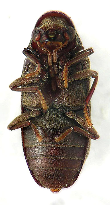 Altri anobiidae , raccolti battendo le fronde di piccoli olmi in un bosco a prevalenza di roverella. Mentre li preparavo mi ha incuriosito molto il loro sistema di ripiegamento delle antenne, le quali possono essere nascoste dall'insetto (quando questo è in vita) in una sorta di concavità presente fra le pro- e le mesocoxe. Un curioso sistema di difesa, che evidentemente è molto diffuso tra gli anobiidae, ma che io non avevo mai notato .Grazie per l'aiuto Dimensioni: 3mm |
