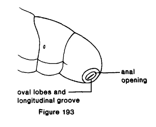 Leggo sia su Stehr (1991. Immature Insects, Vol. 2) che su Leschen, Beutel & Lawrence (2010. Hanbook of Zoology, Vol. 2) che le larve di Anobiidae possono essere distinte da quelle di altri coleotteri per la riduzione del X segmento addominale. Questo presenta due lobi ovali, separati nel mezzo da un'incisione longitudinale.