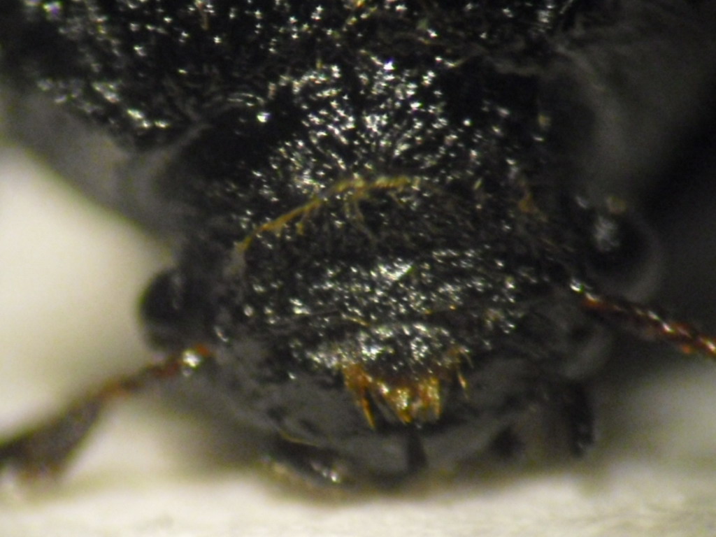 Da quel che capisco le due specie si differenziano soprattutto per le dimensioni, per il colore delle elitre (?) e per la scultura del "declino apicale" (che neanche io so a quale termine esatto corrisponda, ma è l'area che ho cerchiato in giallo nella figura sotto).