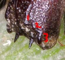 Non si tratta di specie facilmente distinguibili da foto: la spina grande posteriore è conica e liscia nel sexdentatus, appiattita e rugosa nel perforans.