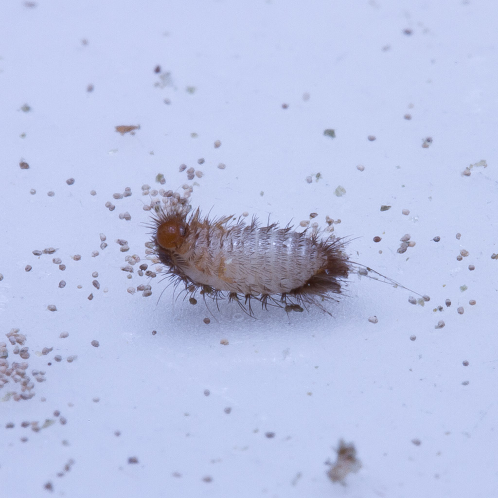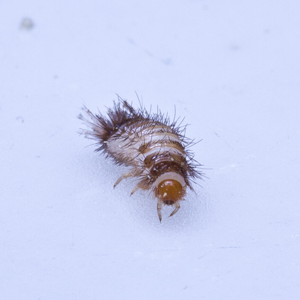 Quei ciuffi di setole sui segmenti posteriori sembrano indicare il genere Anthrenus, come del resto le condizioni del ritrovamento, non so però quale specie