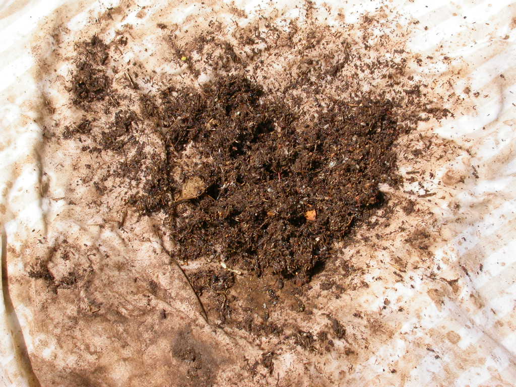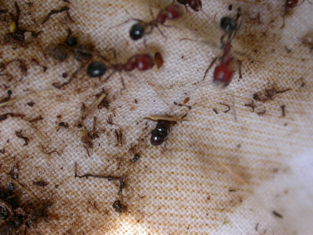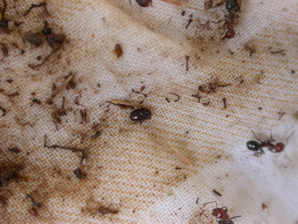 Ho recuperato qualche foto su come avevo ottenuto questo ed altri esemplari: il lavaggio del suolo prelevato da formicai. Il detrito pescato con il colino, messo ad asciugare su un pezzo di stoffa: Alcuni esemplari, facilmente individuabili anche senza selezionatore: