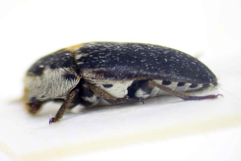 Se non ho capito male dovrebbe essere un Dermestide e forse Dermestes (Dermestinus) frischii Kugelann, 1792 :?:
