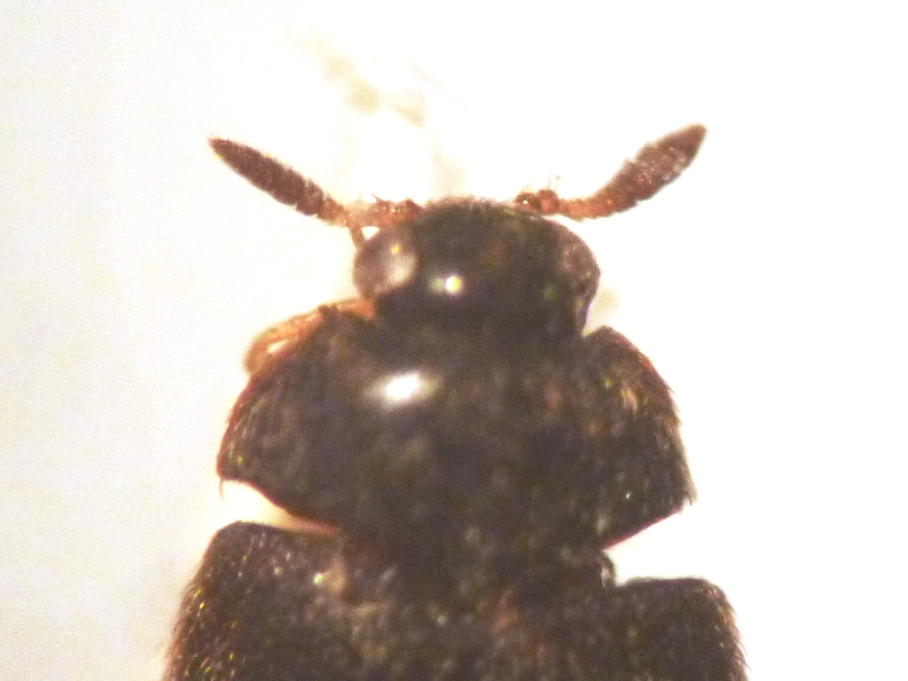 Trogoderma glabrum (Herbst, 1783) ?? Da quel poco che ho visto non dovrebbero esserci altre specie nere con i peli bianchi a fasce simili Raccolti in trappole al vino L. = dimensioni variabili da 2 a 2,5 mm Notare come i maschi abbiano le antenne più lunghe, soprattutto l'ultimo segmento Le prime due foto ritraggono due coppie diverse per evidenziare questo carattere Primo maschio Secondo maschio |