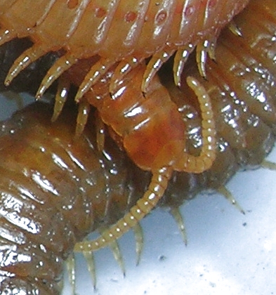 Ciao Giovanni. Come molti altri policheti che si muovono sul fondo (policheti erranti, in contrapposizione a quelli sedentari, che se ne stanno nel loro tubo o altro riparo) hanno sviluppato delle espansioni laterali su ogni metamero che somigliano molto a zampe: i parapodi. Questi, con le setole ad essi associate, e il corpo lungo e spesso appiattito, nonchè il modo di muoversi, li fanno somigliare abbastanza ai chilopodi, ma in realtà sono ben diversi. Per cominciare, non hanno esoscheletro. Gli anellidi che ci sono più familiari (lombrichi e simili) sono invece ben diversi, e appartengono agli Oligocheti (che sono quelli col clitello). |