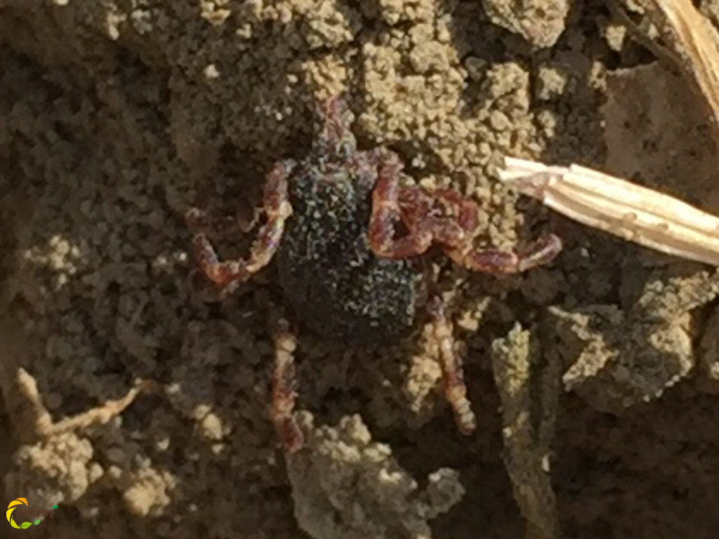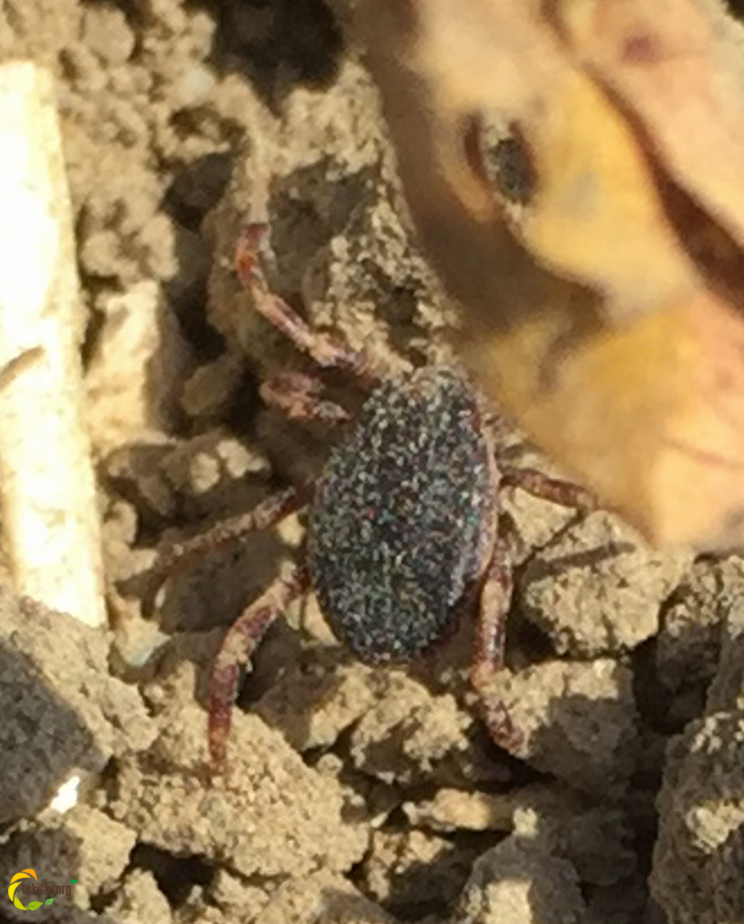 It's an adult male of a tick; probably genus Hyalomma if legs have whitish parts (as I think to see) or Rhypicephalus if legs uniform and smaller. But something else can be, details are unevident. :hi: