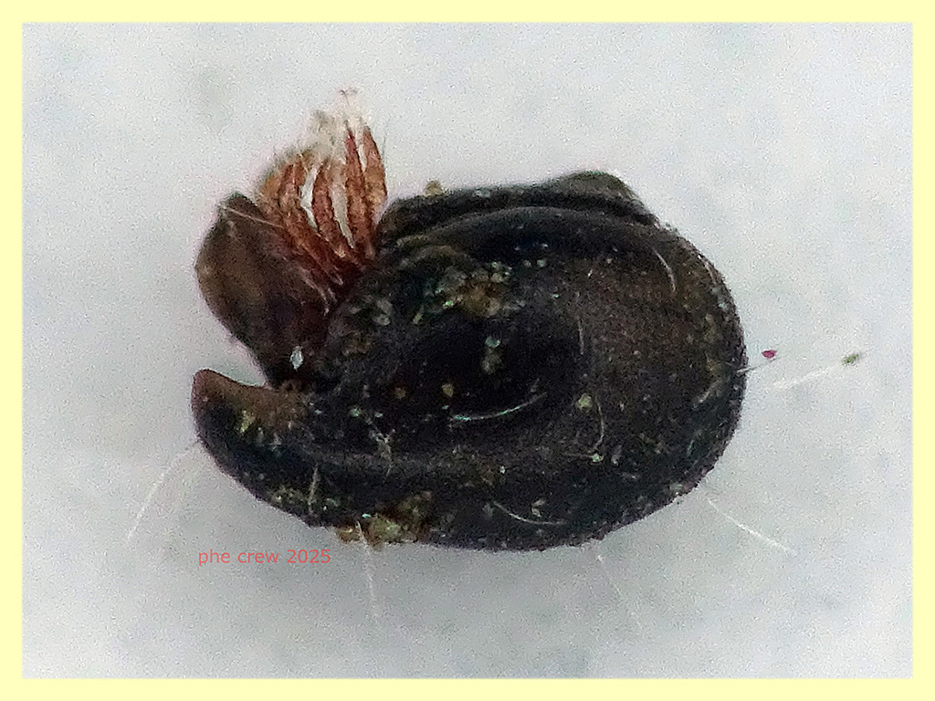 ....di solito becco degli Oribatida piu' piccoli sui 0,5 - 0,8 mm. rossicci, Bordeaux, lisci e lucenti....ma questi mi son subito saltati all' occhio. Misurano 1 mm. sono scuri, ruvidi e con pelazzi lunghi. A prima vista potreste snobbarli caduti dal Berlese, perche' sembrano proprio dei piccoli granelli di terreno, ma basta aspettare un poco e si aprono pian piano facendo vedere prima le zampe pelose e poi il resto del corpo. Cercando sul web arrivo a Steganacarus sp. e proprio per i lunghi peli forse anomalus ?