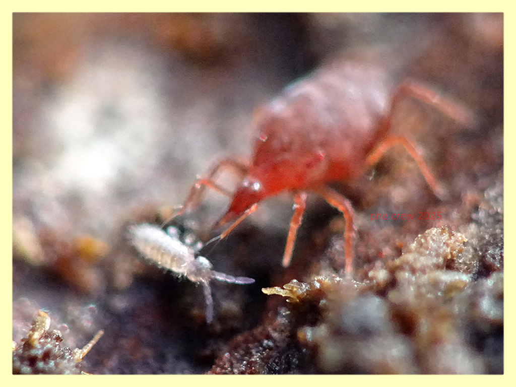 Acaro con Collembolo circa 2 mm. sotto corteccia di Pino - (4).JPG