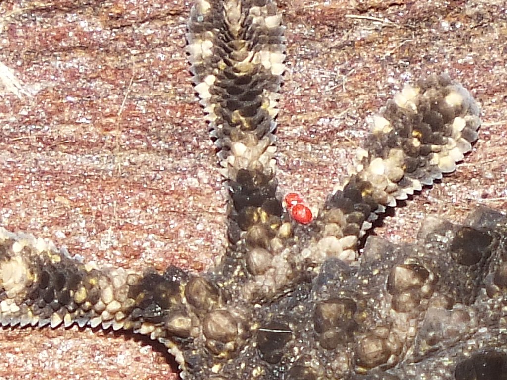 Degli artropodi non so cosa dire. Ma nel caso di questo geco la concentrazione maggiore di acari appare sotto l'occhio, non so se sia una piega della pelle o la rima palpebrale, comunque sembrano non tanto facili da raggiungere. Poi ce n'è qualcuno sporadicamente sulle zampe e quelli potrebbero essere il risultato di una grattata o di un tentativo di liberarsi del fastidio. Noi vediamo bene dove sono annidati gli acari, ma il povero geco non ha uno specchio a portata di mano... mai provato a liberarvi da un pulviscolo nell'occhio senza specchiarvi o chiedere l'aiuto di qualcuno? :D