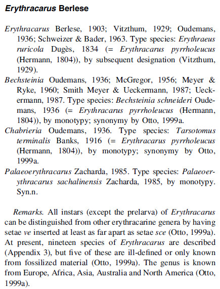 J.C. Otto 2000: A cladistic analysis of Erythracarinae.