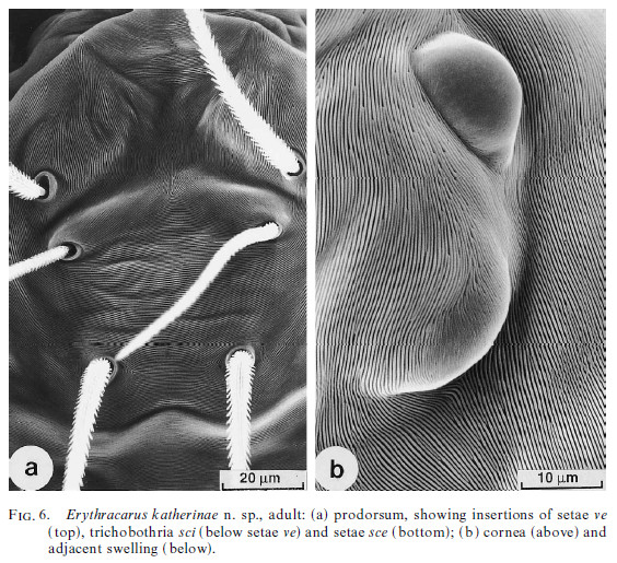 Inserisco un'immagine al SEM (Fig. 6B) di queste strutture in Erythracarus dal lavoro di revisione del genere di Otto (1999).