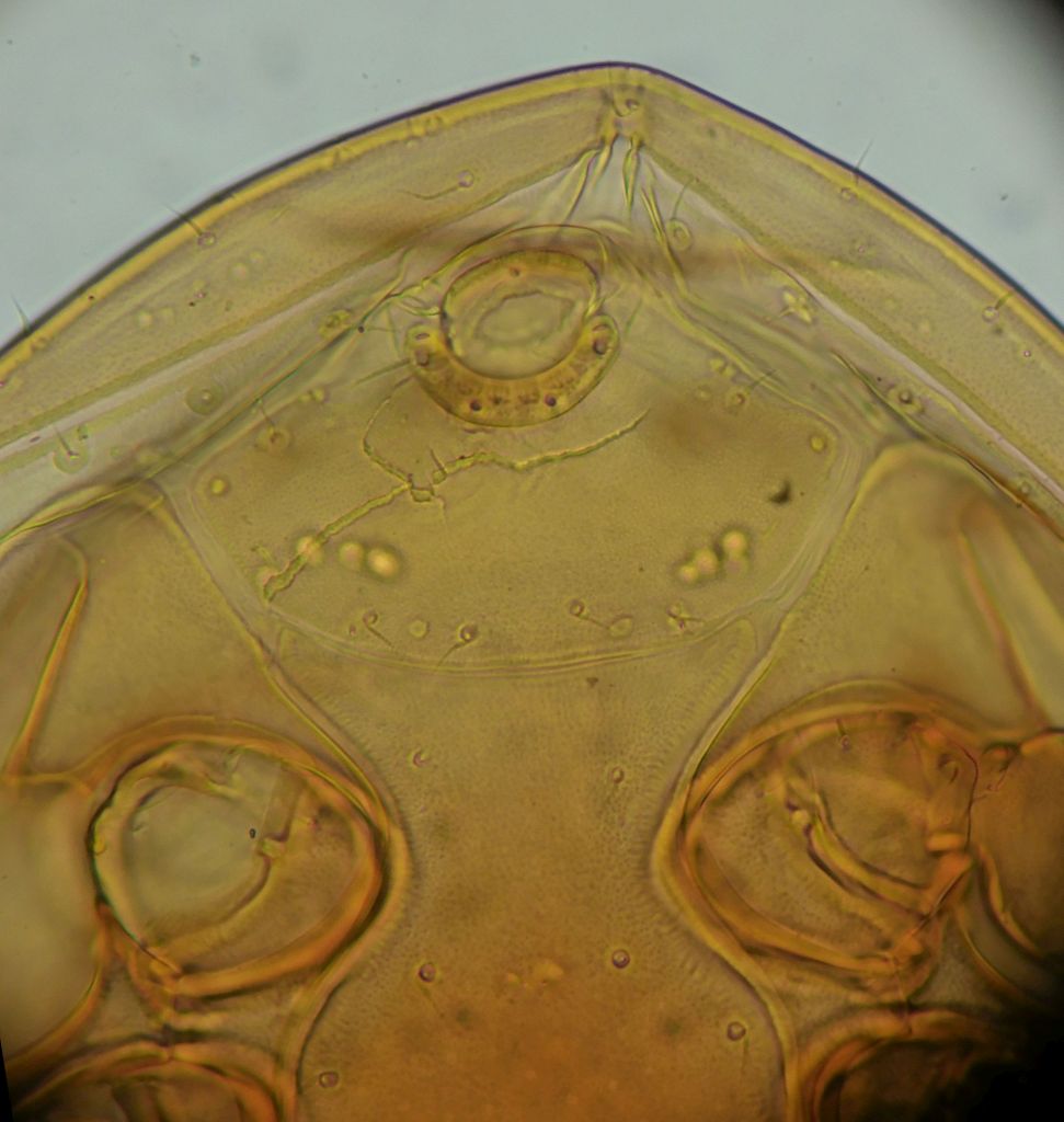Per iniziare, se riesci servirebbero delle foto più a fuoco della parte terminale dello scudo sternale e soprattutto dello scudo ventro-anale. Lo scopo è quello di vedere meglio tutte le setole e i "pori" e la loro reciproca posizione.