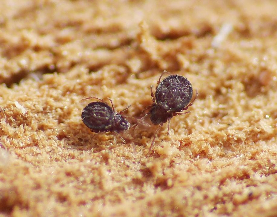 Acari piccoli (meno di 1 mm) e lenti nel camminare, trovati sotto una corteccia di eucalipto in un gruppo di una cinquantina.