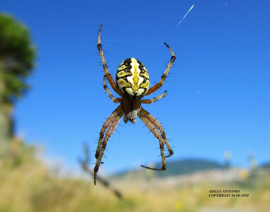 Ora che ci faccio caso, un elemento che potrebbe aiutare a riconoscerla (visto che nessuna delle immagini di Aculepeira, né di N. adianta presenti nella mia guida corrispondono per colorazione dell'opistosoma) è rappresentato dalla disposizione dalle bande scure presenti sulle zampe, che non coincide con quelle di Aculepeira ceropegia :roll: :oops: .