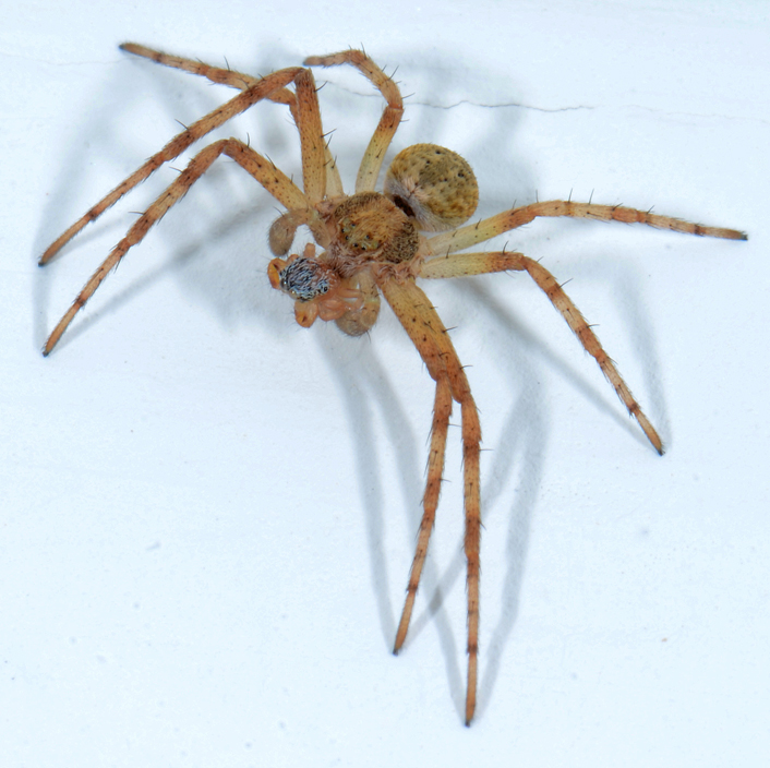 Avevo già documentato un Philodromus che preda un giovane probabilmente della stessa specie, in questa discussione: viewtopic.php?f=421&t=92612&hilit=philodromus Oggi ho visto una scena molto simile, ma dentro casa. Un Philodromus (forse P. aureolus?) intento a mangiare un piccolissimo ragno, che sembrerebbe un giovane della stessa specie. In questo caso, all'interno di un appartamento, ci sarebbe da aspettarsi che non ci sia un grande affollamento di esemplari, per cui è probabile che il piccolo predato sia parte della prole del predatore. Molti ragni hanno cure parentali, anche piuttosto evolute, in questo caso si è all'opposto estremo. Chiedo conferma sia per il genere (Philodromus) e la supposta specie (aureolus?) del predatore, sia della possibilità che anche la preda sia della stessa specie. |