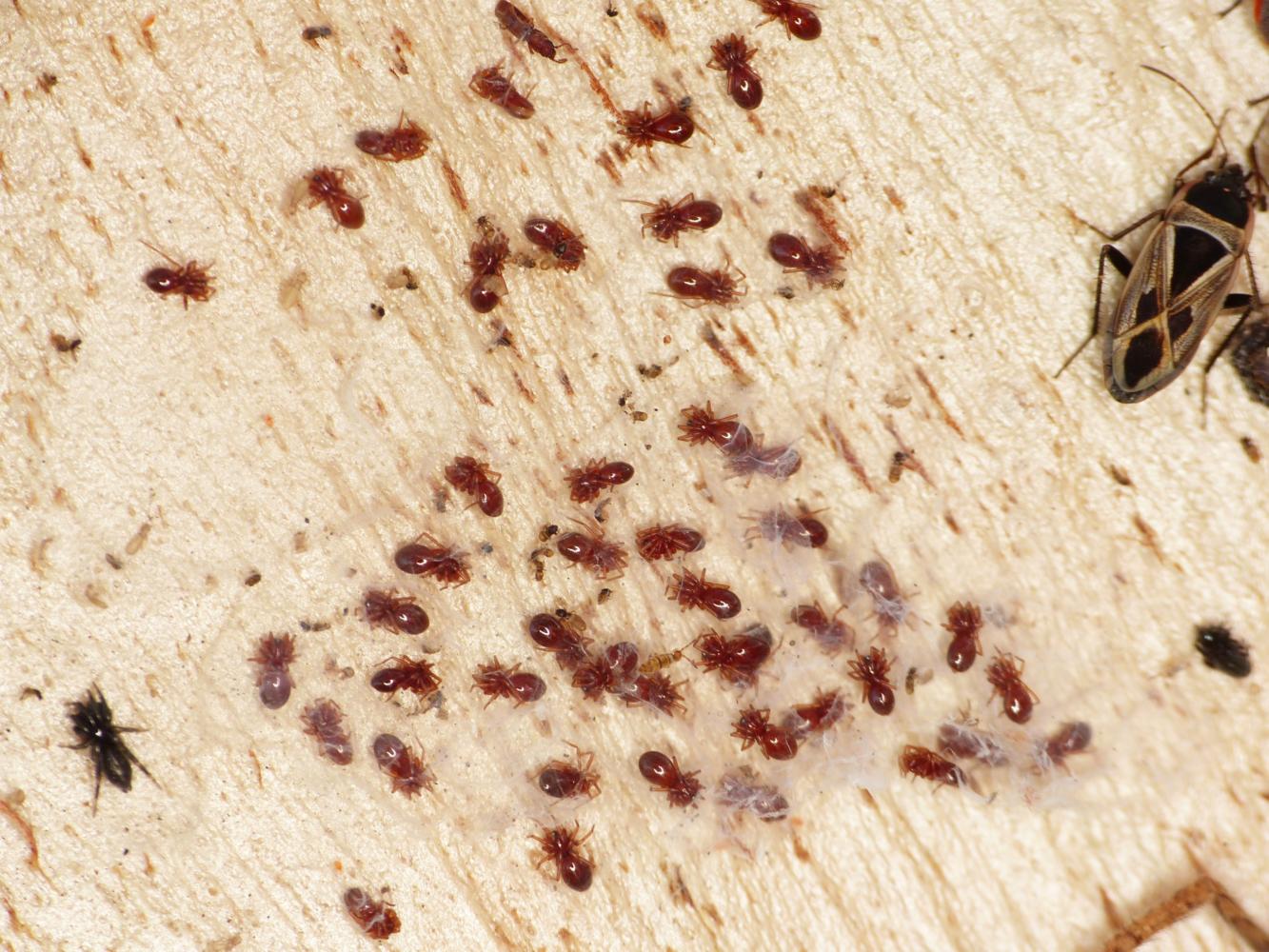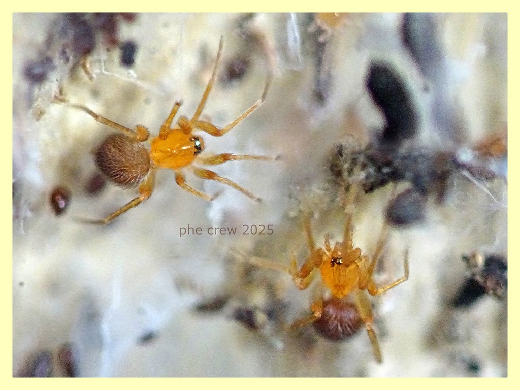 ...questi dovrebbero essere maschi si vedono i pedipalpi ingrossati. Credo che tra le loro prede rientrino anche gli Oribatidae....infatti in una delle foto si vede un maschio che si intrufola tra le ragnatele per acciuffarne uno....