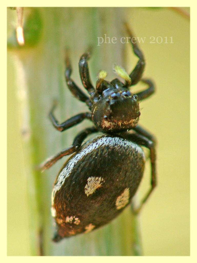 | Heliophanus sp. - Araneae, Salticidae https://www.entomologiitaliani.net/public/forum/phpBB3/viewtopic.php?f=421&t=24428 |
